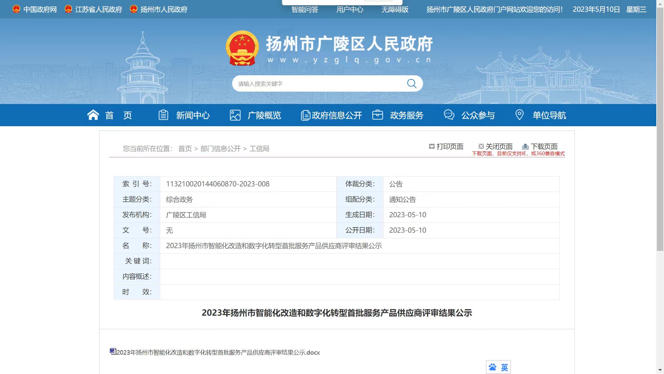扬州市工业和信息化局日前公布了第二批扬州市智能化改造和数字化转型服务产品供应商名单,江苏宏诚智能科技有限公司成功入选,成为供应商名单中的一员。